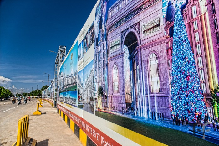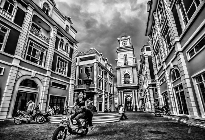 Development in Cambodia in recent years has taken a bizarre path. This may be epitomized by the dramatic story of the grotesque Koh Pich, or “diamond island”, a symbol of the sudden, intense infrastructure boom in the capital Phnom Penh. Thousands have been evicted from here, in order to build luxury houses, golf courses, amusement parks, and even entire quarters that are supposed to resemble old european architechture. Ordinary people can only stare in awe at the surreal atmosphere of what looks like a movie set, dreaming of a better future.